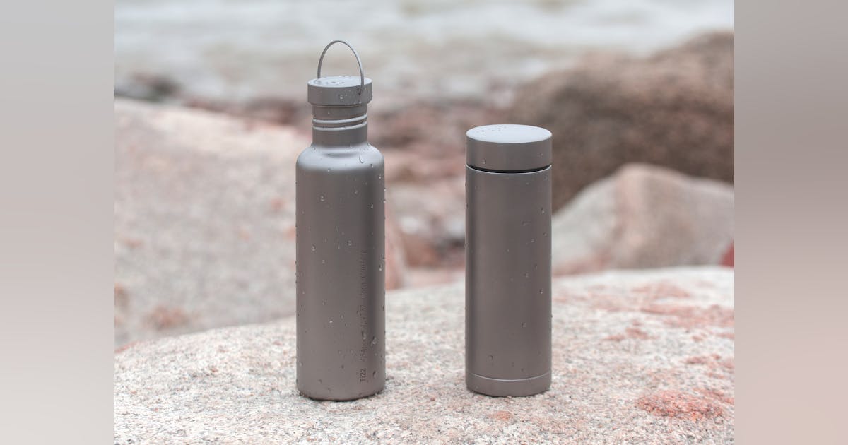 チタン製のボトル。値段を考えるとそれだけの価値があるかはわかりませんが、チタン製のボトル!ステンレスとかアルミ等とは違う渋い輝きが所有欲を満たしてくれます!